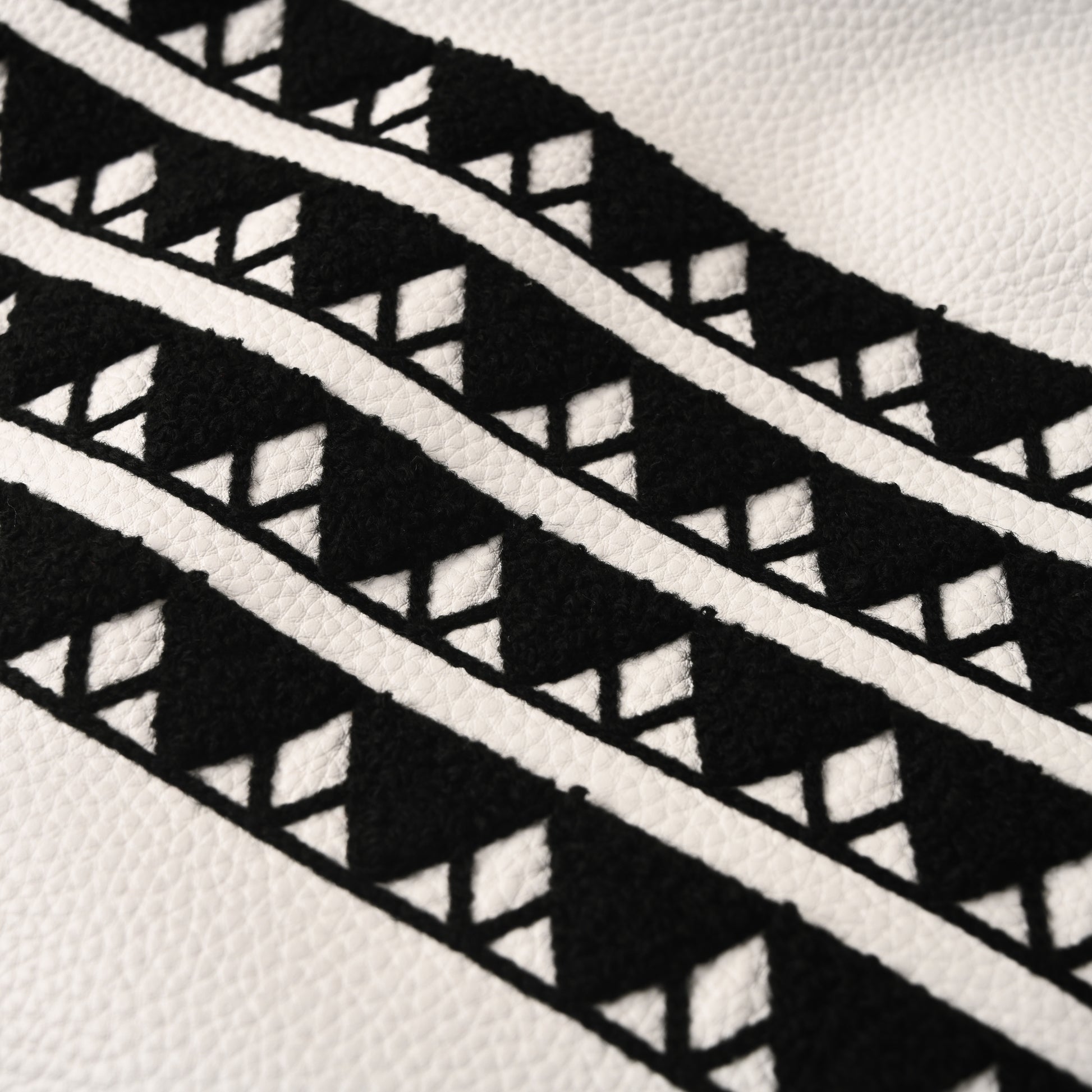 Front zip closure. Signature striped grosgrain buckle at back of neck.