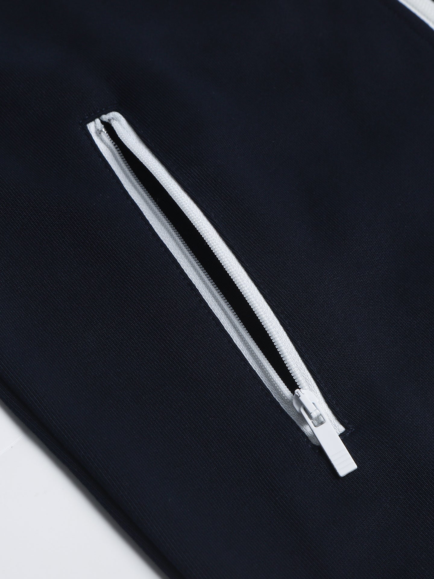 Front button closure, lapels, welt front pockets. Signature striped grosgrain loop tab at back of neck.