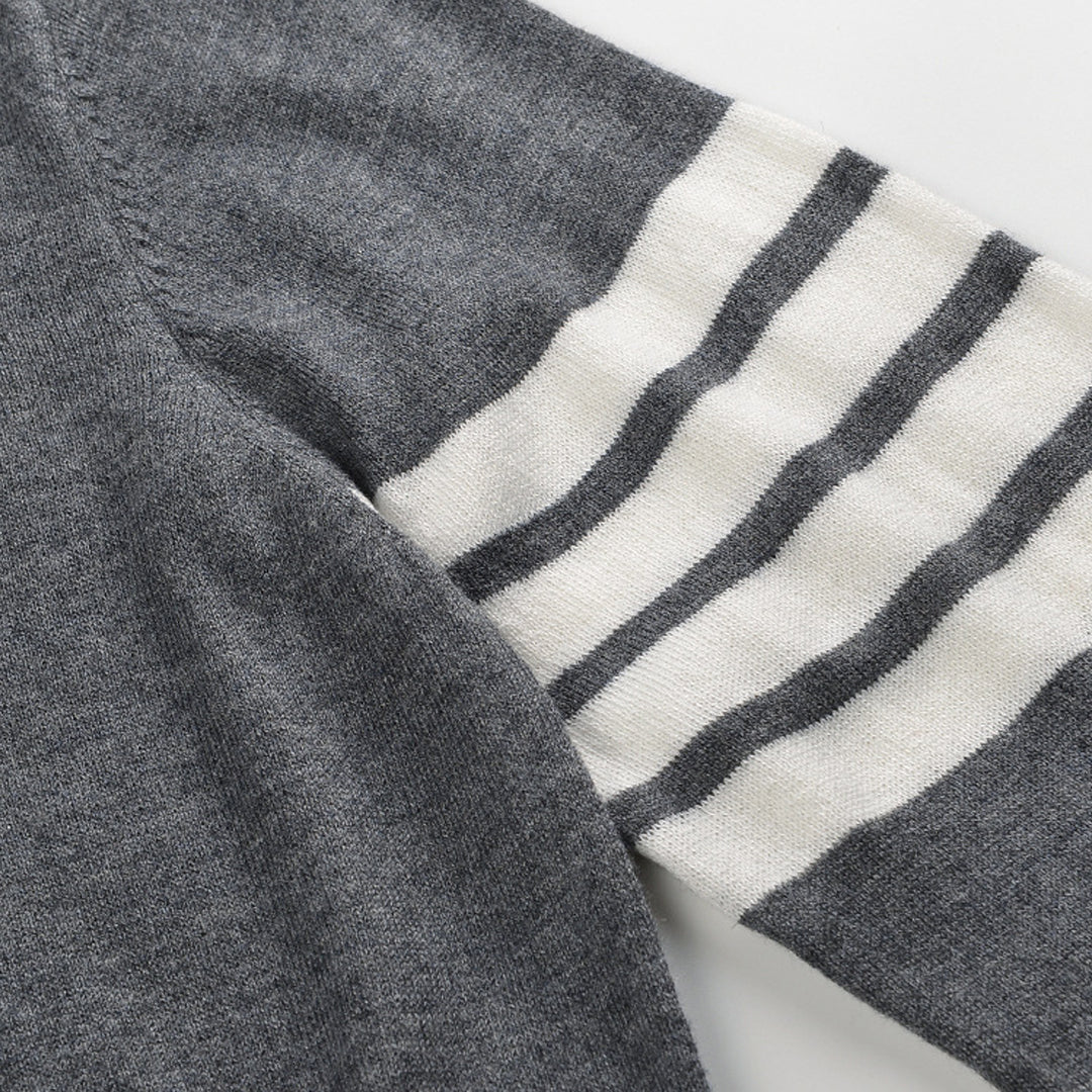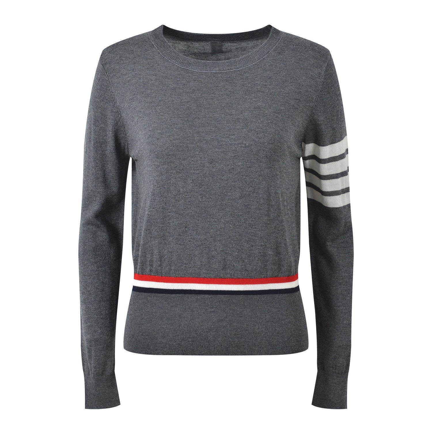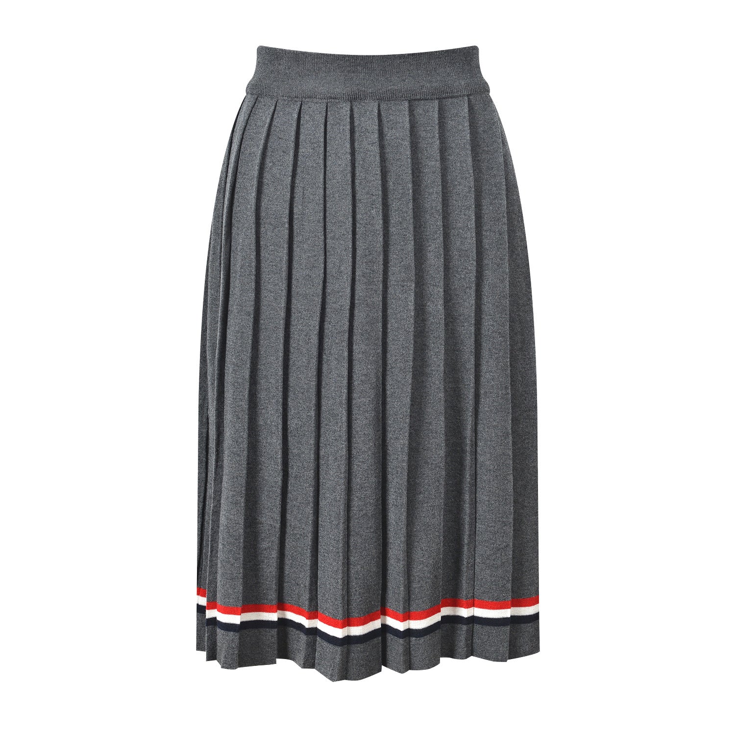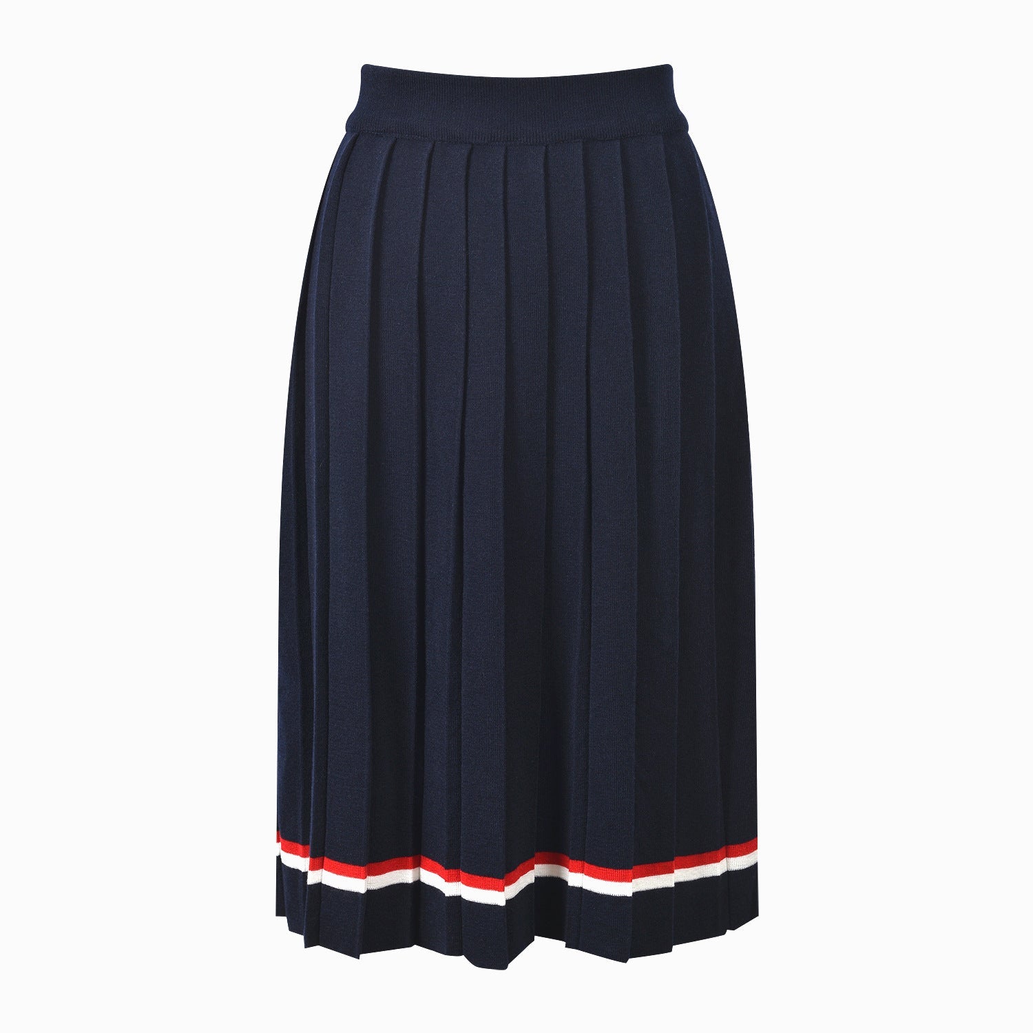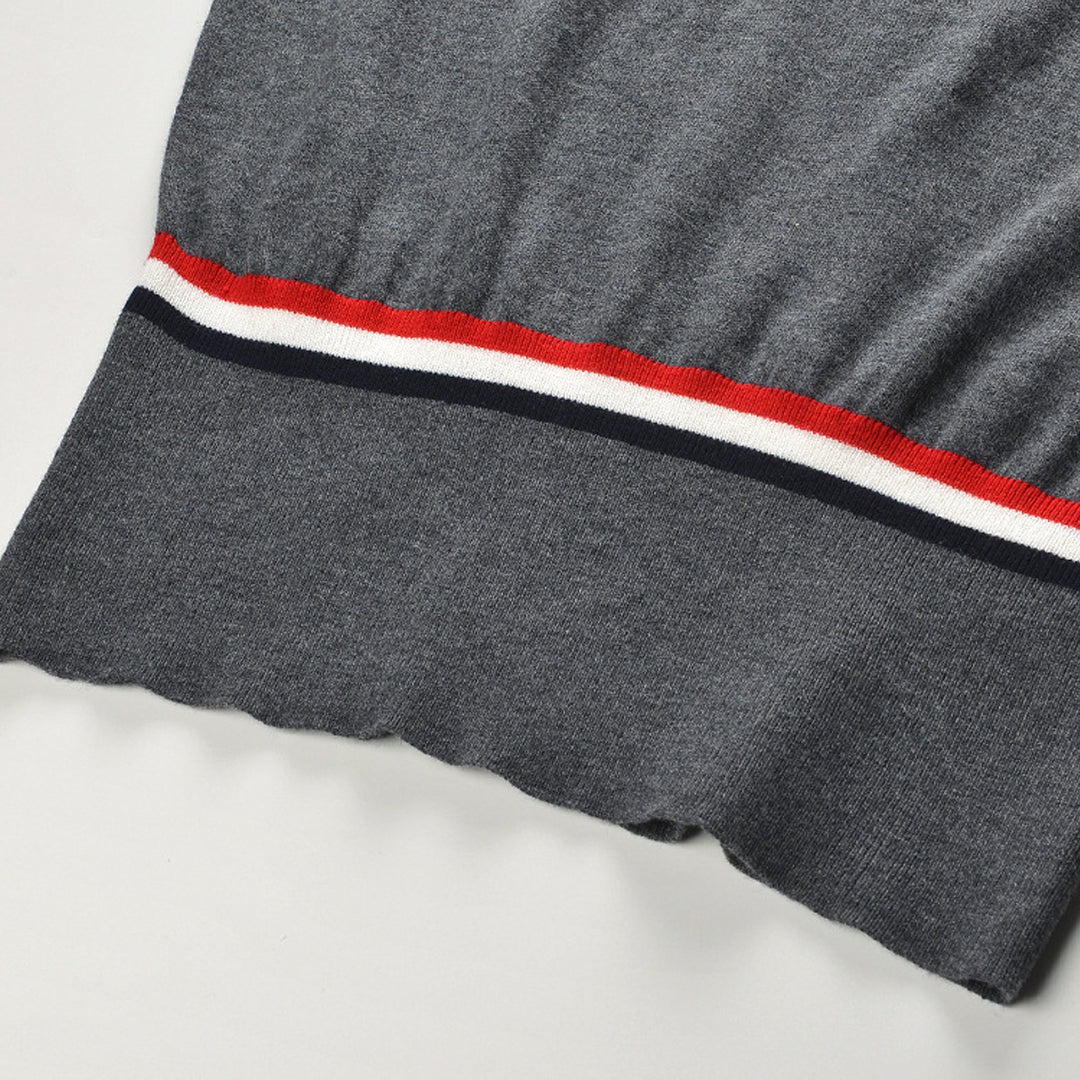 Button-fastening side slits with signature striped grosgrain trim